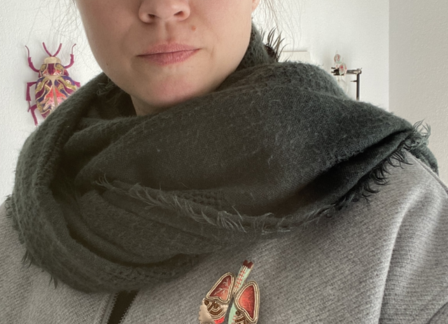 Cette broche mesure environ 5 cm par 4 cm et est très légère.