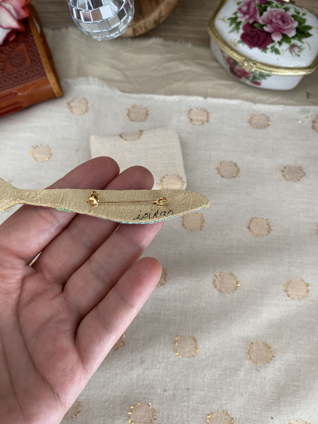 Broche brodée sardine vert fluo