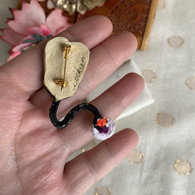 Broche brodée à la main.