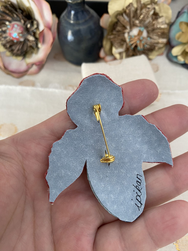 Cette broche mesure environ 6,5 cm par 6 cm et est très légère.