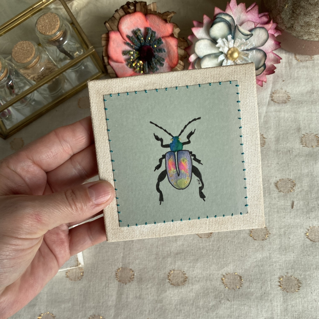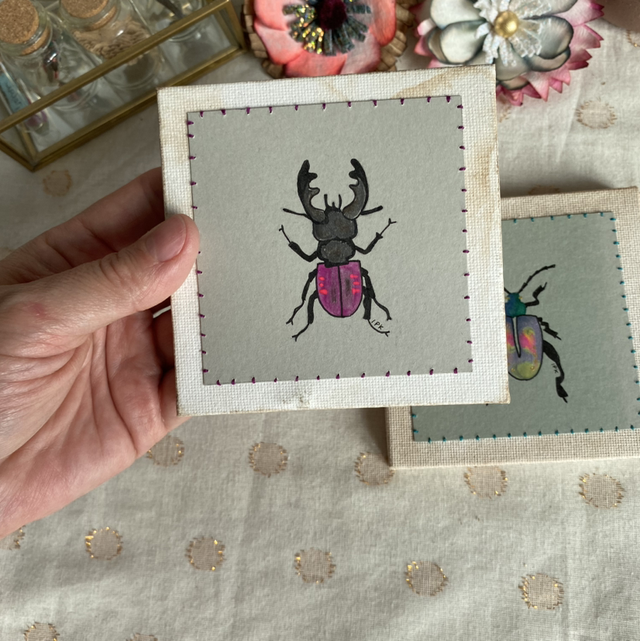 Lot de 2 cadres insectes peints et brodés