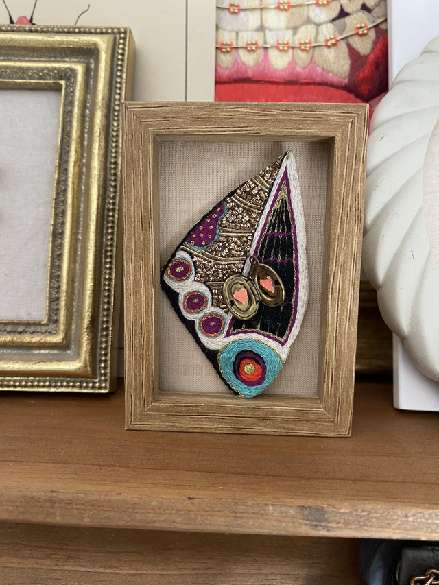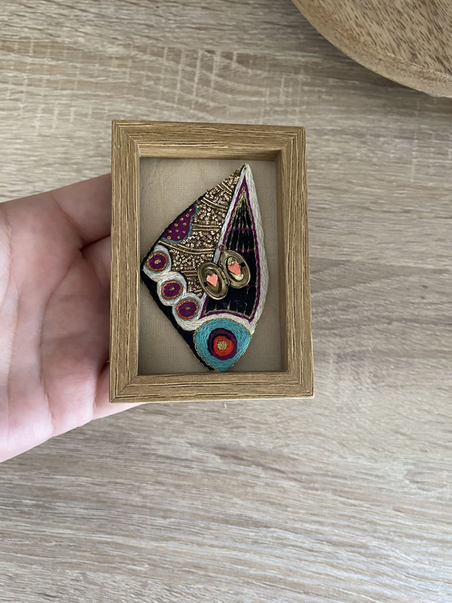 Pièce unique. Le travail de broderie nécessite plus de 4 heures de travail.