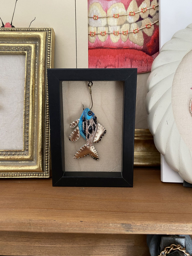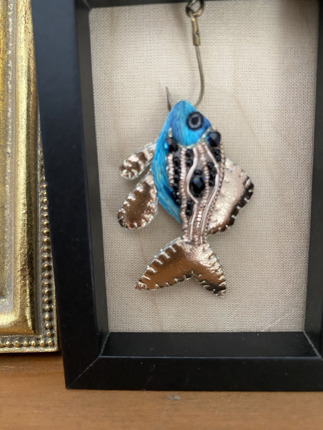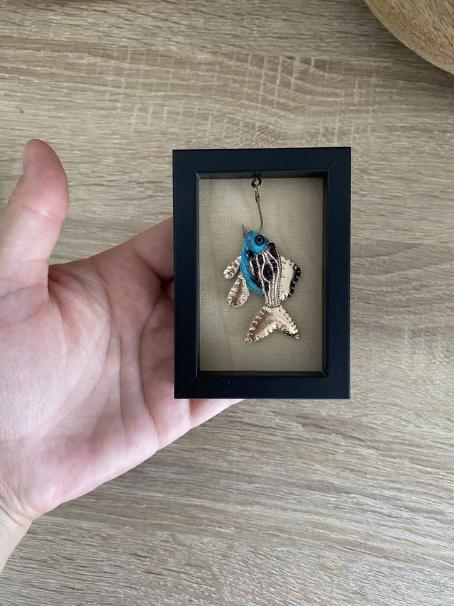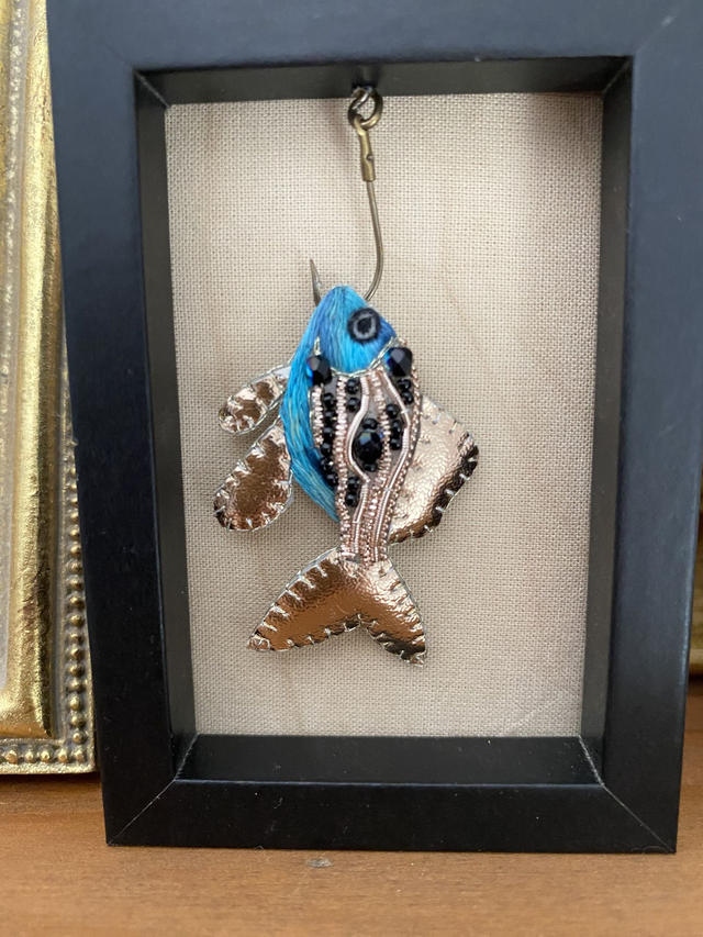 Poisson bleu hameçonné, idéal pour compléter votre collection de curiosité!