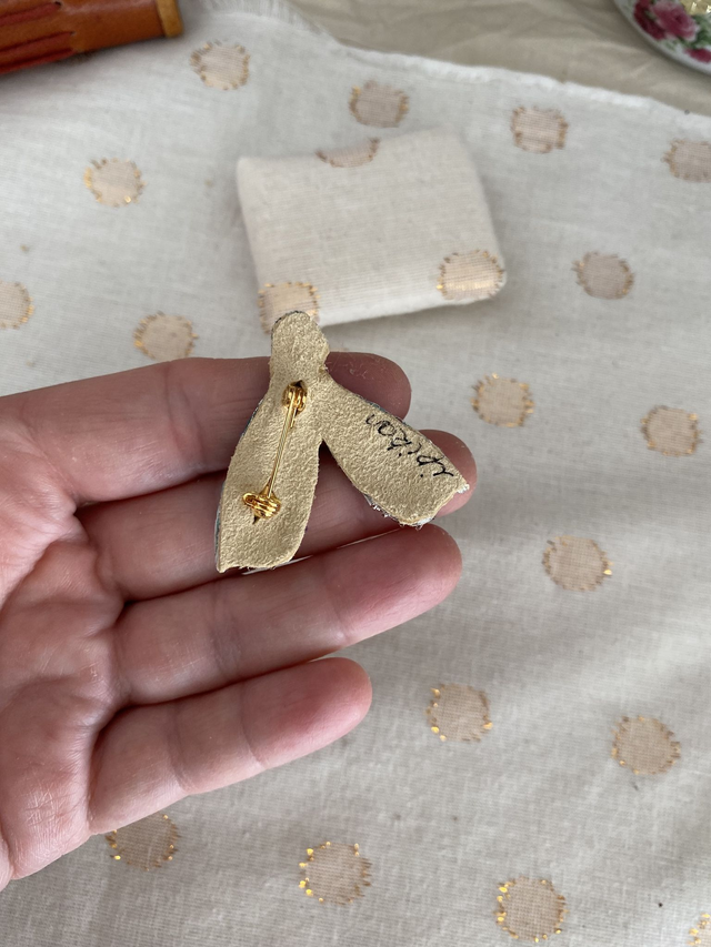 Cette broche mesure environ 4,5 cm par 4 cm et est très légère.