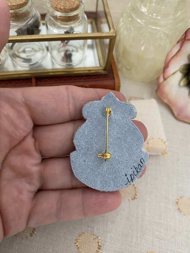 La broche mesure environ 5,5 cm par 4 cm.